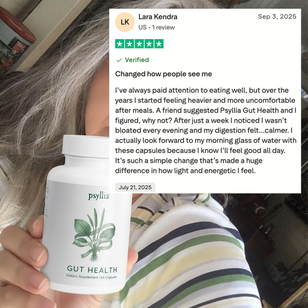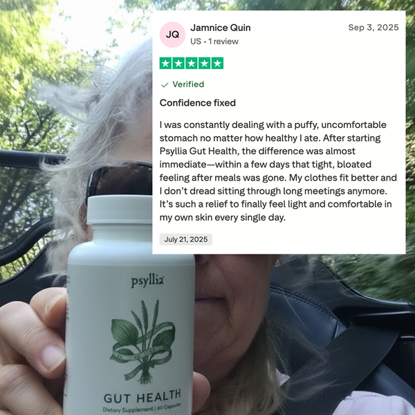 Psyllia® Gut Health™ is a daily botanical formula designed to help you feel lighter, fuller, and more balanced.